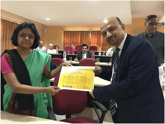 Prof. Nagaraj Subbarao receiving his certificate of merit from Dr. Tripti Singh