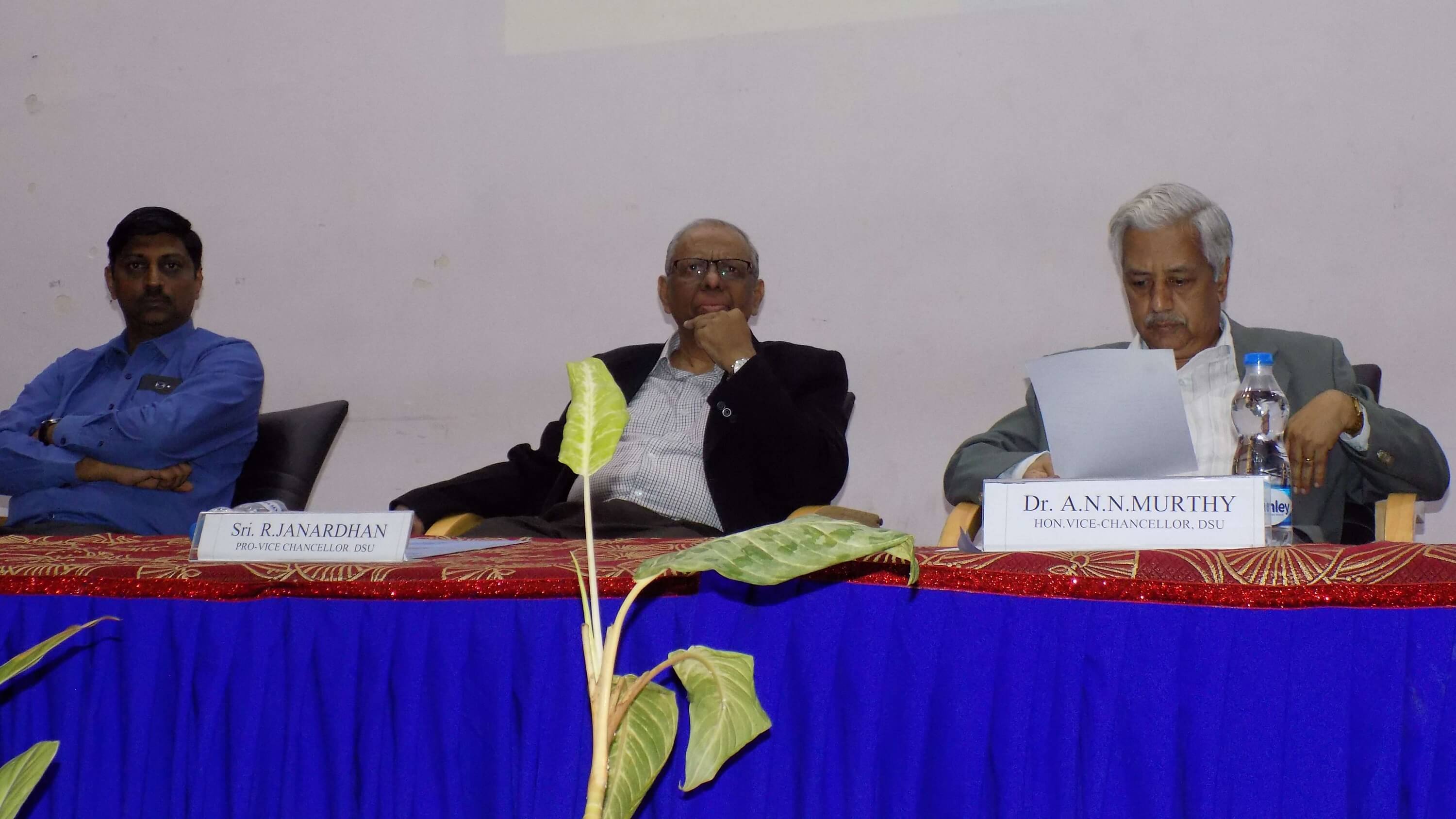 The orientation program for 2018 batch students was organized on 4th August 2018 at 11.00 AM to 12.30 PM at CD Sagar Auditorium, Kumaraswamy Layout Campus, Bangalore. The academic session was inaugurated by our chief guests - Dr ANN Murthy, Vice-Chancellor and Sri.Janardhan, Pro Vice-Chancellor, DSU.