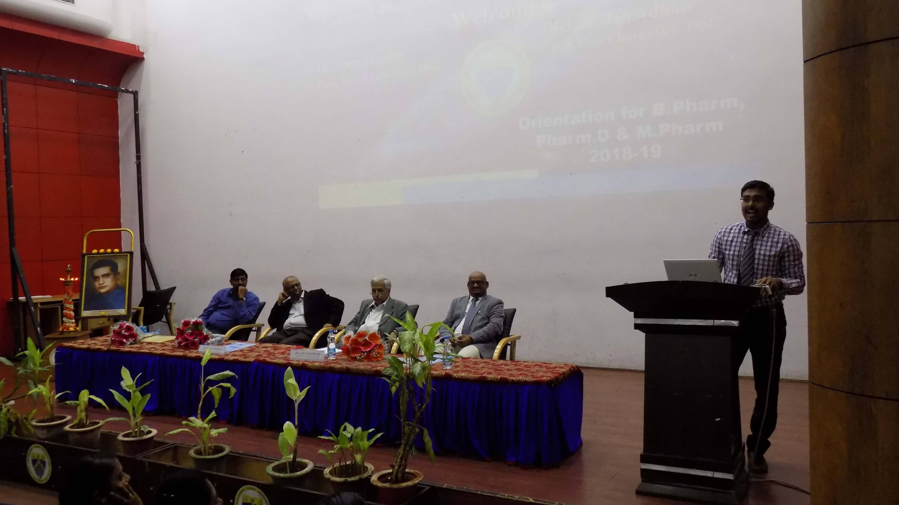 Dr. Murugan - Dean, College of Pharmaceutical Sciences addressed the young health science professionals and detailed about the course, highly skilled faculty members, academics and facilities of the university.